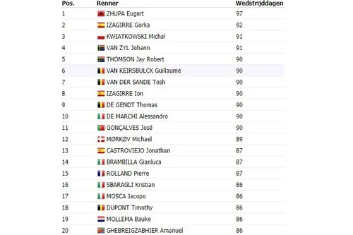 We staan aan het einde van het seizoen en dus is het tijd om te kijken naar statistieken, lijstjes en rijtjes. Zo zagen we eerder dat Dylan Groenewegen even vaak won als Alejandro Valverde en daarmee de vaakst winnende Nederlander is. Bauke Mollema is echter de Nederlander met de meeste koersdagen. Eugert Zhupa spant de kroon met liefst 97 koersdagen, gevolgd door