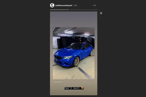 Is Mathieu van der Poel binnenkort niet alleen meer te bewonderen op de fiets, maar ook in een splinternieuwe auto? Op Instagram plaatste de Nederlander een foto van een blauw model met de tekst: 'Kan niet wachten.' Kijk hieronder wat jullie ervan vinden: