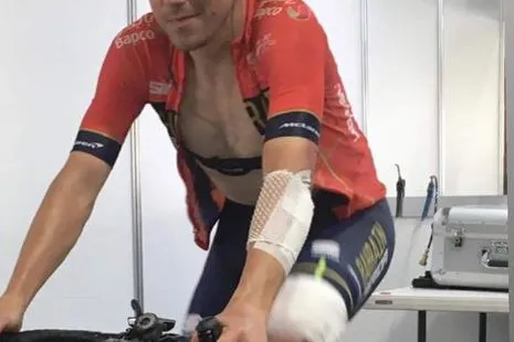 Op Instagram liet Pozzovivo zijn gehavende lichaam zien: