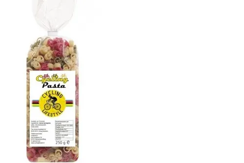 Een zakje Cycling PastaEen leuk zakje met heerlijke pasta in de vorm van een fiets. Deze pasta is speciaal gemaakt voor wielrenners en fietsers. Een smaakvol wielercadeau boordevol koolhydraten. (vanaf € 4,95)