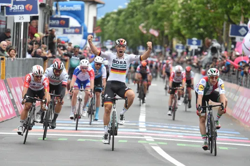 In een krankzinnige sprint was het de meest vermoeid ogende koploper die plots nog wat reserves wist aan te spreken. Damiano Cima bleef met een ultieme krachtinspanning als enige het aanstormende peloton voor. Ackermann baalde, niet beseffende dat Démare ver achter hem finishte. Zodoende werd de strijd om paars beslecht in het voordeel van de renner van BORA-hansgrohe.