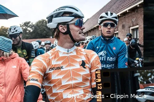 WK gravel te midden van vele voltijds professionals.' Havik werkt momenteel nog parttime als marketeer naast het fietsen, maar combineert die twee zaken ook met het ontwerpen van moddervette wielershirts.