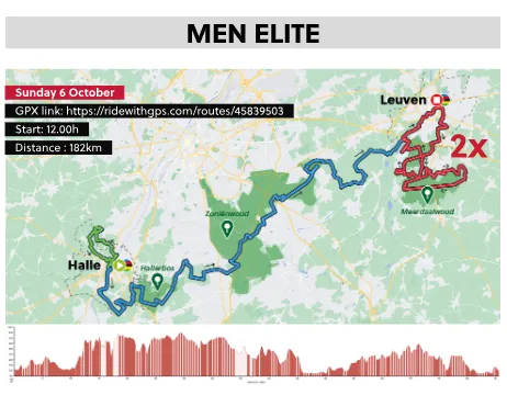 WK gravel-wedstrijden vinden allemaal plaats op het Possozplein in Halle, dat ten zuidwesten van Brussel ligt. Vanuit de start maken de renners een ronde rondom de startplek, welke voornamelijk over boerenpaden en enkele asfaltwegen zal gaan. Na 12,5 kilometer trekken we dan nog eens door Halle, om vanuit daar koers te zetten richting Leuven.