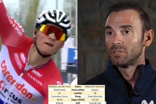 Valverde en Van der Poel vertegenwoordigen twee generaties. De oude generatie die alle ups-downs van het wielrennen al heeft meegemaakt versus de jonge onbevangen generatie, die nog koerst met het hart en zonder enige angst. Tot nu toe troffen de twee elkaar op Vlaamse kasseien, terrein dat zowaar voor Valverde meer wennen zal was, dan voor Van der Poel. Zondag – hoewel in Nederland – zal de wereldkampioen op de weg zich niet minder hoeven te voelen dan de wereldkampioen in het veld. Het wordt hoe dan ook een interessante clash. En misschien wel de enige echte ooit tussen deze twee op het allerhoogste niveau.