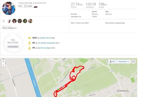 Renners zijn niet altijd even open over hun prestaties, wattages en gegevens, maar Strava biedt bij veel mannen toch uitkomst. Wie reed er records aan puin tijdens trainingen en hoe presteerden de renners in wedstrijden? In de Leiderstrui kijkt in 'Gespot op Strava' wekelijks naar de cijfers achter de prestatie. Deze week: Wout van Aert, die in de eerste ronde zijn winstkansen zag verdwijnen in Heusden-Zolder. We vragen ons meteen af of de wereldkampioen veldrijden had meegedaan om de winst als hij in die eerste ronde niet lek had gereden. Hij leek dik in orde. We kunnen door mechanische pech echter alleen maar afgaan op de cijfers van Van Aert op Strava en de woorden die hij na afloop tegenover