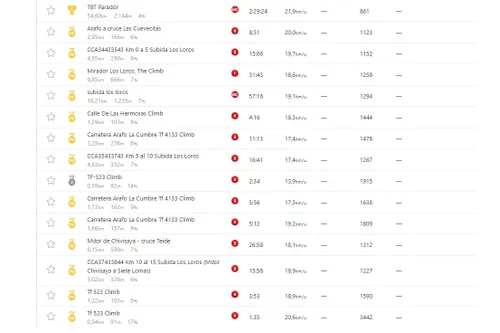 Strava-gegevens Kruijswijk: Knallen op Tenerife