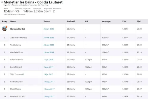 Maar Bardet slaat het Franse kampioenschap op de weg over om de laatste hand te leggen aan zijn Tourvoorbereiding. Die bracht hem dinsdag op de Col du Lautaret. De 12.42 kilometer lange klim leverde Bardet een KOM op, en een dikke ook. Hij was een dikke minuut sneller dan het oude record.