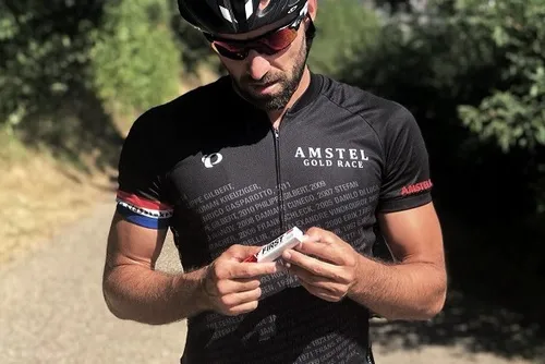 First Energy Gum, die gretig aftrek vindt onder veel wielrenners. ‘Mathieu kent het ook, haha! Veel wielrenners en amateurs weten ons te vinden. De cafeïne wordt meteen opgenomen in je lichaam, waardoor je direct over extra energie beschikt. Het is net even het extraatje in een moeilijke wedstrijdfase of toertocht. Cafeïne is gewoon een natuurlijke stof en het helpt met presteren. Daarom zijn wielrenners, en andere topsporters, fan.’