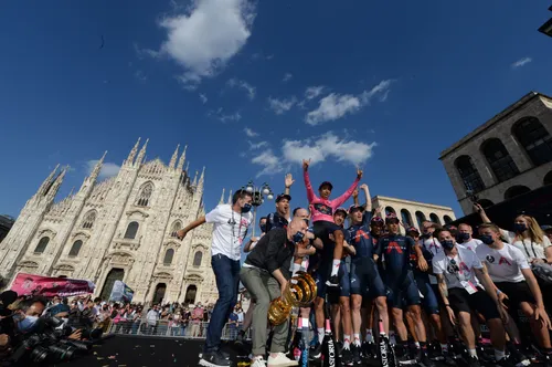 Het zat hem in 2020 niet mee, maar Egan Bernal vocht in het afgelopen seizoen dubbel en dik terug. De Colombiaan volgde zijn ploeggenoot Tao Geoghegan Hart op als winnaar van de Giro d'Italia en mocht die felbegeerde maglia rosa mee naar huis nemen. Impressionante!
