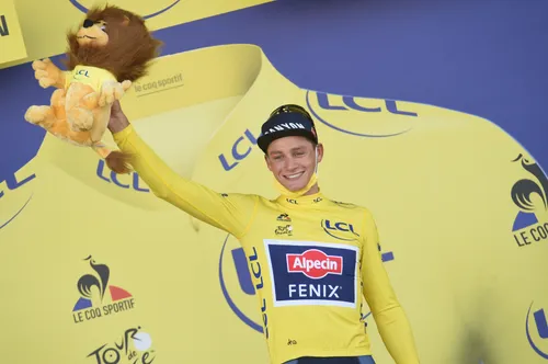 Op 27 juni kwam niet alleen de droom van Van der Poel uit, maar ook die van vele andere wielerfans uit de Lage Landen. Op de Mûr-de-Bretagne voerde hij een spectaculaire show op met een prachtige prijs: de gele trui, die hij opdroeg aan opa Poupou. Van deze foto krijg je toch vanzelf weer kippenvel?