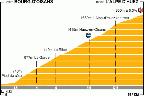 Lance Armstrong-tijdperk. Het parcours was precies even lang als de klim, de tijdrit ging naar de top van l'Alpe d'Huez. Op een volgepakte Alp was het bijna gekkenwerk om de klim op te rijden.