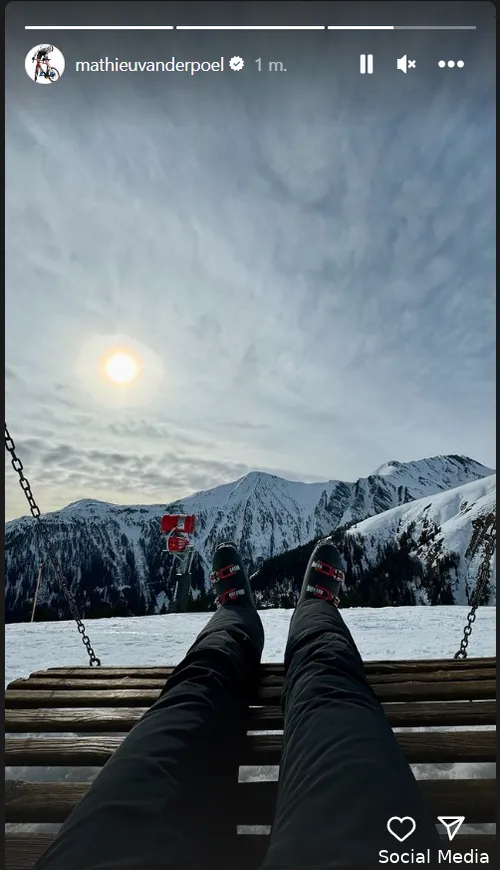 Op dinsdag ging Van der Poel verder met zijn reis door Europa. Hij laat op Instagram een foto zien dat hij met zijn skischoenen aan in het zonnetje ligt, om na te genieten van zijn wereldtitel van zondag in Tábor. Veel (ski)plezier en laat je maar even lekker gaan op je lange latten, Mathieu!