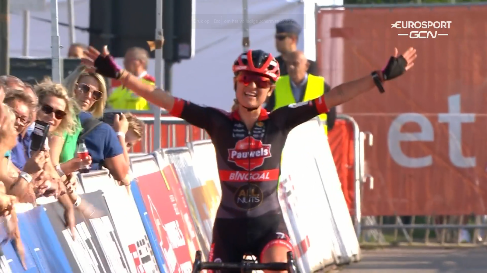 Dat bleek uiteindelijk geen enorme schande voor de veldrijster. 'Toen ik voorin zat kon ik vervolgens goed mijn eigen tempo rijden. Ik ben heel blij dat de vorm zo goed is. Het is altijd fijn om zo'n overwinning mee naar huis te kunnen nemen. De vorige keer lukte het immers niet (Katelijn won in Beringen, Betsema werd derde, red). Ik heb er vandaag wel keihard voor moeten afzien!'