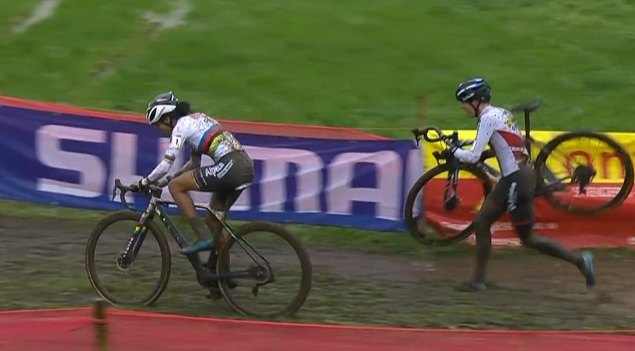Ceylin del Carmen Alvarado, moest de wereldkampioene direct toezien hoe haar grote concurrente bij haar wegreed. Denise Betsema volgde het spoor van Brand, maar ook zij moest loslaten nadat zij volledig wegzakte in de modder.