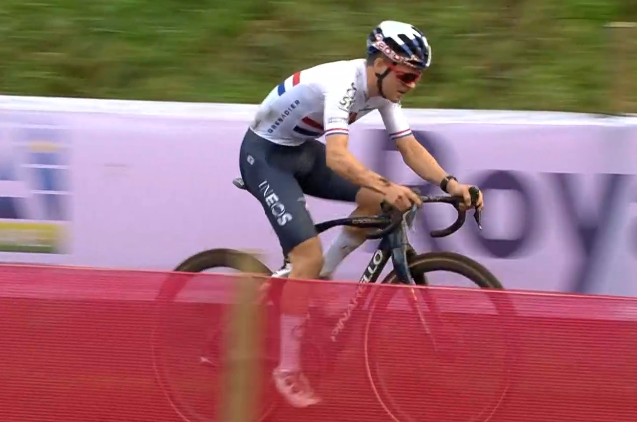 Wout van Aert. De Belg kreeg vlak na de start te maken met problemen aan zijn ketting en werd zodoende teruggeworpen naar een veertigste plaats. Dat was zelf voor de Belg teveel van goede, waarna Pidcock rondes lang in een strijd met Iserbyt terechtkwam. Continu bleef de voorsprong binnen de tien seconden, maar het wiel van Pidcock haalde Iserbyt niet meer. 'Ik voelde me goed en kon een gat maken. De hele race bleef Eli een paar seconden bij me in de buurt. De laatste ronde maakte ik wat fouten en dacht ik misschien dat hij het gat kon dichten.'