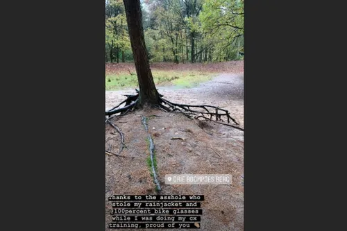 (7 november) Mathieu van der Poel heeft niet de beste dag van het jaar achter de rug. De Nederlander, die zondag zijn rentree in het veldrijden opluisterde met winst in Ruddervoorde, werd donderdag bestolen tijdens een training. Van der Poel laat via Instagram Story weten wat hij ervan vindt, als hij na een training terugkeert bij de boom, waar hij een regenjack en een koersbril had achtergelaten. 'Bedankt klootzak, ik ben trots op je', zo schrijft hij.