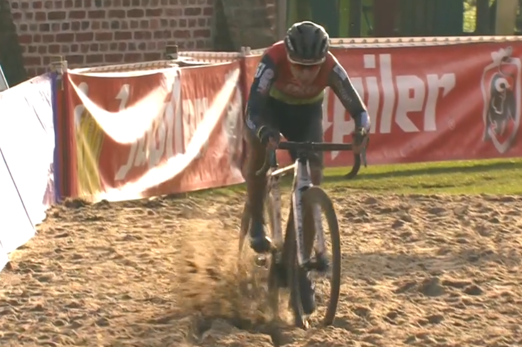 aan het Belgisch kampioenschap veldrijden in Middelkerke. Waar hijzelf de nodige