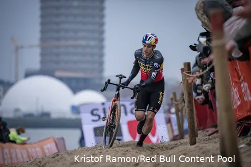 in het flashinterview van de Exact Cross in Mol al dat hij even moest inkomen. De aanval van zijn grote rivaal wist hij echter te remonteren en vanaf dat moment stond de Belg mentaal met 1-0 voor. Dat overwicht werd verzilverd in een loopstrook langs het Zilvermeer. 'Als ik dan een kloof kan slaan op Mathieu, weet je dat je nog even moet volhouden natuurlijk. Dan is het erop rekenen dat hij breekt. Hij moest als eerste afgeven', was het heldere verhaal over zijn versnelling direct na afloop.
