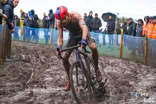 De balken drukten tijdens het EK veldrijden hun stempel op de wedstrijd. Thibay Nys sprong eroverheen, maar door de vermoeidheid durfde Felipe Orts dat niet meer aan. De Belg ging er met de overwinning vandoor. Evenzo zag Mae Cabaca tijdens de juniorenkoers haar medaillekans in rook opgaan door een val over de balken. Marten Schuurman en Koen Timmermans vroegen Ronhaar in hun podcast hoe het zit met zijn springkunsten. 'Ik ben geen superspringer, maar het is wel sneller. Dus als ik kan springen, doe ik dat ook. Maar ik loop liever.'