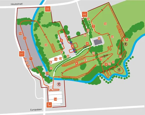 Het parcours is 2600m lang en bevat achtereenvolgens een wasbord, brug, zandbak, heuvelzone, balkjes en nogmaals een dubbele brug. Flink wat hindernissen dus, die we doorgaans wel deels kennen van andere crossen.