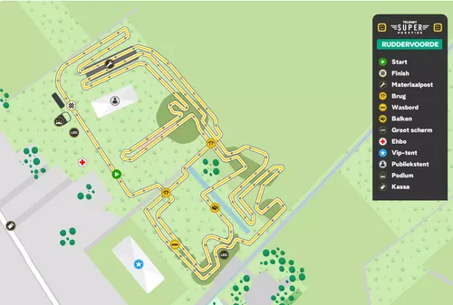 Het parcours in Ruddervoorde heeft voor ieder wat wils, al is het bovenal een grascross. Met veel draaien en keren, balkjes, een zandbak, een wasbord, een brug én een lastige schuine kant is het in ieder geval een bijzonder gevarieerde omloop.