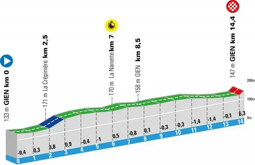 Etappe 3, dinsdag 9 maart 2021: Gien - Gien (14,4 km, tijdrit)