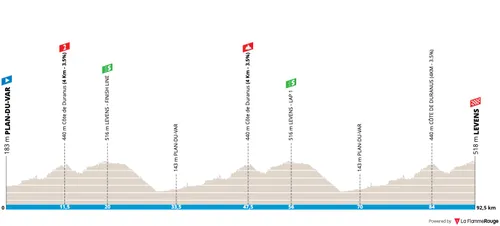 Een heerlijke en lange bergetappe, maar de piek van de rit kwam al wel vroeg. Na 46 kilometer koers vonden we in een tijdsbestek van zeventig kilometer maar liefst vier gecategoriseerde beklimmingen. Daarna liep het allemaal met een sisser af, met nog wel één klimmetje, maar vooral een lange afdaling naar het dal en vervolgens een heuvelachtige weg richting de meet in Biot. De twee slotkilometers stegen aan vijf procent gemiddeld. Deze dag was zodoende uitermate geschikt voor aanvallers, en het liefst aanvallers met een punch bergop!