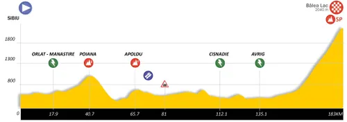 Etappe 1, vrijdag 24 juli: Sibiu - Balea (183 km)