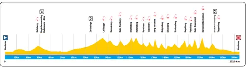Het kan echter goed zijn dat de beslissende move dan al gevallen is, want ook daarvoor worden de renners al over verschillende Vlaamse puisten gestuurd. Wat denkt u van namen als de Taaienberg (Tachtig kilometer van de finish) en de Muur van Geraardsbergen (47 kilometer van Harelbeke vandaan). Genoeg ruimte om het verschil te maken zou je zeggen.