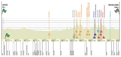 Gent-Wevelgem is eigenlijk te verdelen in drie fases: een lange vlakke aanvangsfase, een uitgerekte heuvelzone van twee lussen en dertig kilometer vlak naar aankomstplaats Wevelgem. Afgaand op de ingekorte editie van vorig jaar en de te beklimmen heuvels dit jaar bestaat de vlakke fase uit meer dan 150 kilometer, waarin de vluchters waarschijnlijk vrij spel krijgen. Of gooit de wind, die sterk blaast in de bekende Moeren, roet in het eten?