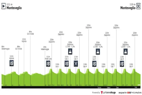 In elke lokale ronde ligt de Zappolino, de enige scherprechter van de koers, maar die moet dan wel even tienmaal beklommen worden. Zeker als de koers flink hard wordt gemaakt is dit vervelende Italiaanse klimmetje een beul, die bij elke ronde wat gruwelijker wordt. De Zappolino is anderhalve kilometer lang aan gemiddeld 5.3%.