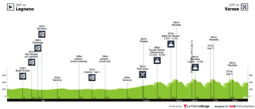 Gran Trittico Lombardo. In totaal wordt er 202,7 kilometer gereden, van Legnano naar Varese. Dat betekent een lange vlakke aanloop van dik honderd kilometer, alvorens we op een lokaal rondje belanden, waar flink geklommen gaat worden. We finishen in Varese bergop, dus de sprinters kunnen beter thuisblijven.