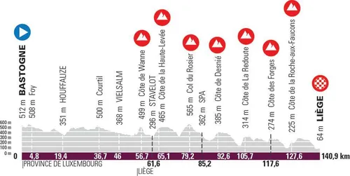 Het zal een paradijs zijn voor de vluchters, want na de eerste klim is het bijna 47 kilometer fietsen tot de volgende pukkel. De finale begint eigenlijk pas als we Vielsalm gepasseerd zijn. Daarna volgen de beklimmingen elkaar in rap tempo op. Zoals altijd zal de Redoute één van de scherprechters zijn, met 2,1 kilometer klimmen aan 8,9 procent. Met de Côte des Forges en Côte de la Roche-aux Faucons is er daarna nog alle tijd voor een schifting. Hoewel de finish andermaal niet heuvelop ligt, leert de ervaring dat de sterkste renners echt wel komen bovendrijven.