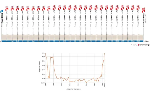 De renners kunnen sowieso maar beter hun beste stuurkunsten van stal halen, want het is constant draaien en keren in Drenthe. De eerste beklimming van de VAM-berg is 500 meter lang en stijgt aan 7 procent gemiddeld. Let op: het maximale stijgingspercentage op deze klim is 24 procent! Na een snelle afdaling gaan de renners na een lokaal rondje langs Drijber uiteindelijk een andere kant van VAM-berg omhoog. Deze klim is 200 meter, maar stijgt wel aan 12 procent gemiddeld en gaat deels over kasseien. De uiteindelijke finish ligt bovenop deze klim.
