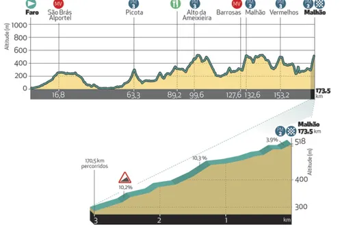 Etappe 5, 24 februari: Faro - Malhão (173,5 km)