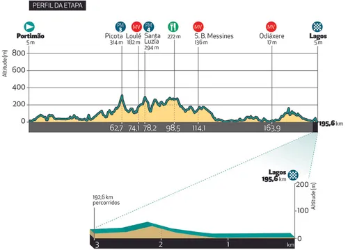 Etappe 1, woensdag 19 februari: Portimão - Lagos (195,6 km)