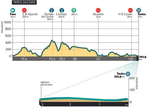 Het peloton kan zich opmaken voor een explosief ritje. Vanuit de feesthoofdstad van de Algarve, Albufeira, zullen de renners vrijwel de hele dag te maken krijgen met korte beklimmingen. Slotstuk van de rit gaat naar de Alto do Malhão, waar de renners twee keer zullen passeren. Deze heuvel is slechts drie kilometer lang, maar daarvan gaan de eerste twee wel steil omhoog met gemiddeld meer dan 10%. Naar het einde vlakt de klim wat af, dus reden om er vroeg aan te beginnen?