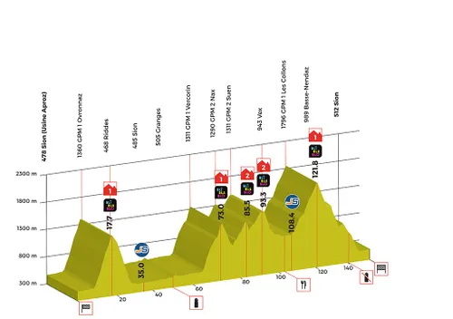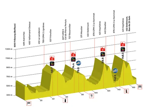 Een adembenemende etappe met vijf stevige beklimmingen onderweg. De laatste dertig kilometer zijn in veelal dalende lijn, op enkele knikken na. Avonturiers met klimmersbenen kijken reikhalzend uit naar deze etappe.(Bron:www.tourderomandie.ch)