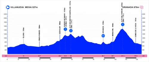 53,9 km: Puerta de Nivar, 3e categorie (11 km aan 4,3%)