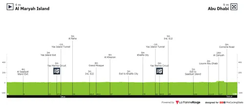 UAE Tour. Net zoals vorig jaar speelt de etappe zich af in en rond Abu Dhabi, al is deze met 127 kilometer iets korter. De finish ligt aan Abu Dhabi Breakwater, een stuk ingepolderd land aan de Perzische Golf. Het is weer een ideaal parcours voor de sprinters.