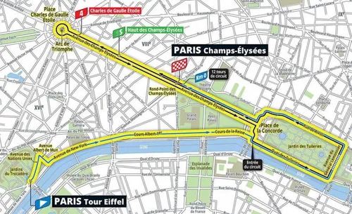 Iedereen die de afgelopen jaren naar de slotrit van de Tour heeft gekeken, kent het parcours: langs bezienswaardigheden als de Arc de Triomphe, Place de la Concorde, Jardin des Tuilleries en de Eiffeltoren. Maar vooral de mythische Champs-Elysées, waar de rensters twaalf keer langs zullen komen in de plaatselijke ronde van 6,8 kilometer.
