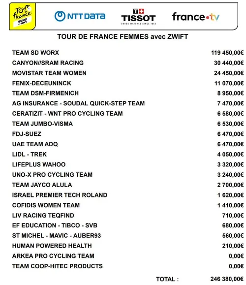 Tour de France Femmes niets (!) verdienden: Arkéa Pro Cycling Team en Team Coop-Hitec Products.