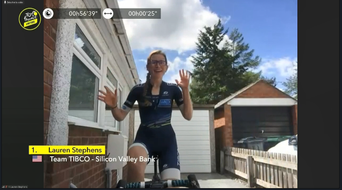 Lauren Stephens heeft de slotetappe van de virtuele Tour de France voor vrouwen gewonnen. De renster was de snelste in de massasprint. De eindzege van de wedstrijd gaat naar Team TIBCO - Silicon Valley Bank. Net als in de 'echte' Tour de France voerde de slotetappe van de virtuele editie naar de Champs Élysées. Waar deze rit normaal gesproken gebruikt wordt voor een wielerparade met champagne en veel felicitaties, viel er voor de aanwezige rensters weinig te genieten: er moest gewoon gereden worden.