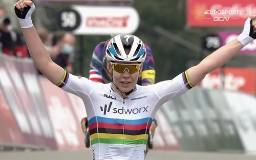 Op de Muur moest ze het uiteindelijk zelf doen. 'Ik ben heel blij dat ik het weer kon doen, en kon winnen voor de ploeg. Ik denk wel dat dit de moeilijkste was, want we hadden niet de hele wedstrijd controle. De ploeg heeft keihard gewerkt voor mij, dus dat zorgde wel voor wat extra druk. Het was een flinke battle met Katarzyna Niewiadoma, maar ik ben blij dat ik het heb geflikt.'