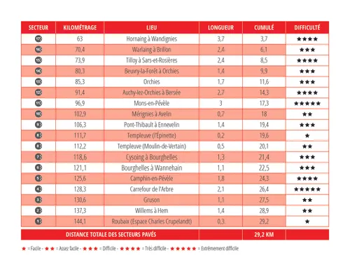 Afijn, bij de strook van Hornaing (vier sterren) vatten de vrouwen dezelfde omloop als de mannen aan. Dat betekent dat er nog altijd zeventien stroken resteren in de laatste 85 kilometer, met onder meer bekende namen als Mons-en-Pévele en Carrefour de l'Arbre. Die laatste kan op iets meer dan vijftien kilometer van de meet wel eens bepalend zijn, al gebeuren de moves bij de vrouwen ook al wel eens eerder in de koers.