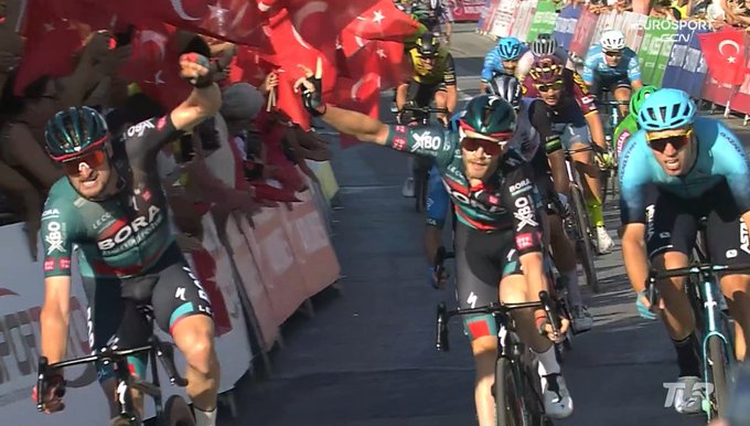 Ronde van Turkije gewonnen. De Duitser van BORA-hansgrohe was in een knotsgekke slotkilometer de snelste, maar vooral de slimste. Denz fungeerde eigenlijk als lead-out voor