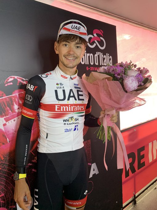 het jammerlijke uitvallen van João (Almeida, door ziekte, red.) had ik de laatste drie dagen de kans om voor eigen succes te gaan. Ik wilde dolgraag een etappe winnen en ben heel blij dat dat gelukt is.'