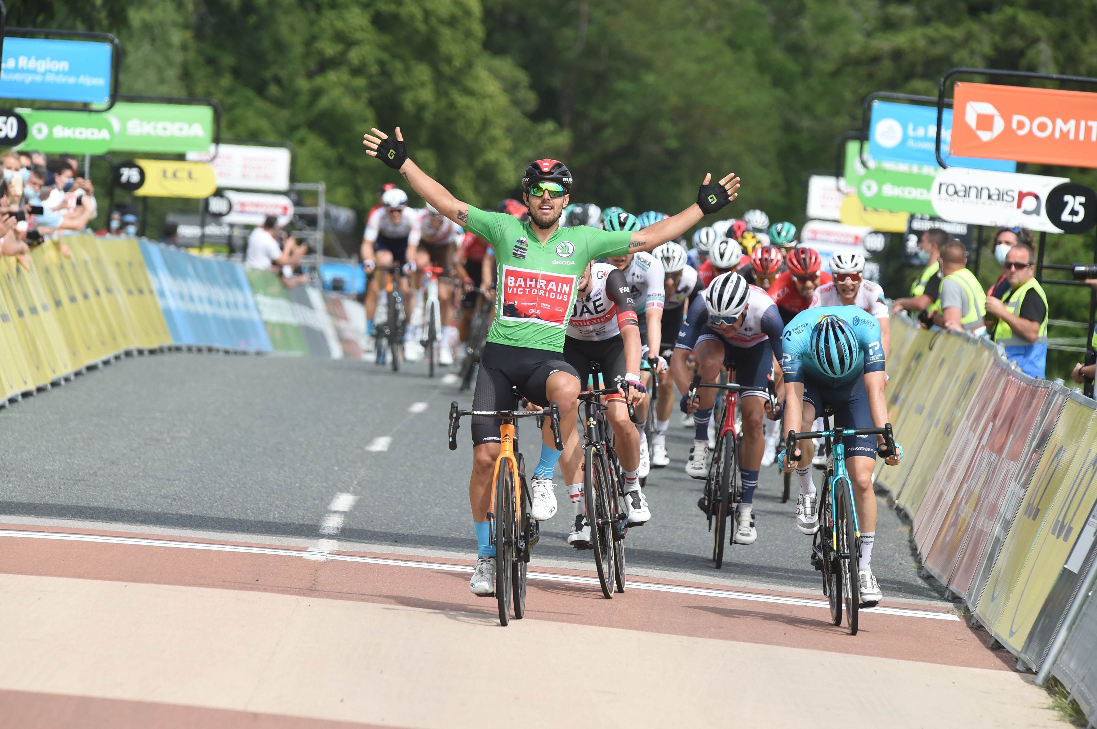 Critérium du Dauphiné. Nadat hij en het peloton tweemaal werden verrast door een succesvolle vroege vlucht, kwam de winnaar nu wel uit het peloton. Daarin was de Italiaan de sterkste. Op een aankomst van bijna zes procent wist Colbrelli zijn concurrenten net achter zich te houden en dat voelt als een bevrijding: 'Ik ben tevreden. Na twee tweede plaatsen ben ik hier heel blij mee.'