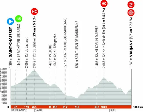 134,8 km: MONTÉE DE VAUJANY (5,7 km aan 7,2%)