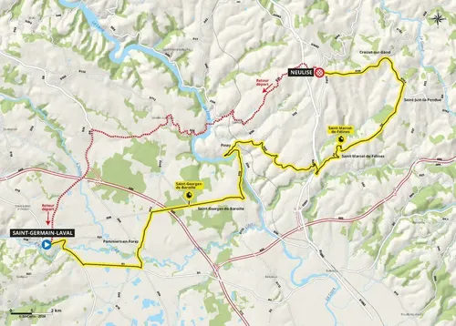 Critérium du Dauphiné van dit jaar! En dat is er eentje van liefst 34 kilometer, tussen Saint-Germain-Laval en Neulise. In totaal moeten er 375 hoogtemeters overwonnen worden, wat het dus zeker geen biljartvlak parcours maakt.